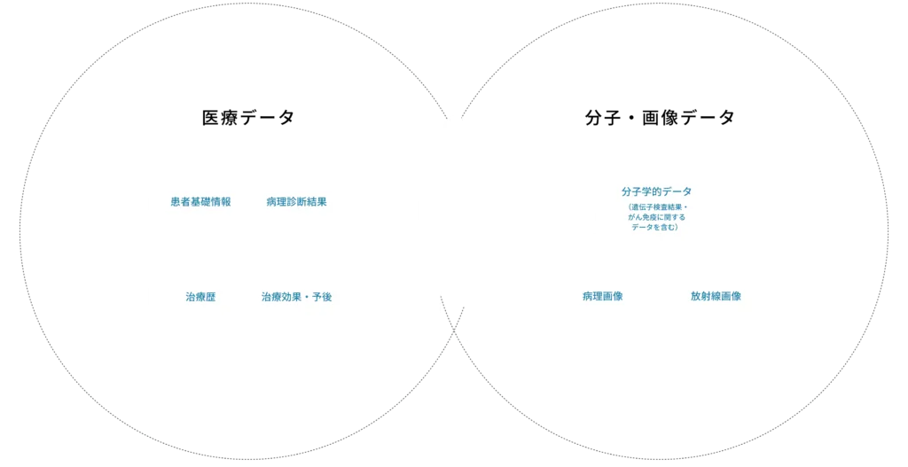 詳細な治療経過を含む臨床データ、分子学的データ、画像データを合わせたマルチモーダルなデータを構築し、日々その量を増やし続けています。