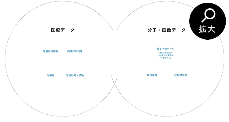 詳細な治療経過を含む臨床データ、分子学的データ、画像データを合わせたマルチモーダルなデータを構築し、日々その量を増やし続けています。