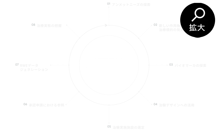 医療機関から提供されたさまざまな医療データを構造化し、製薬企業・バイオベンチャーの皆さまにサービスを展開しています。