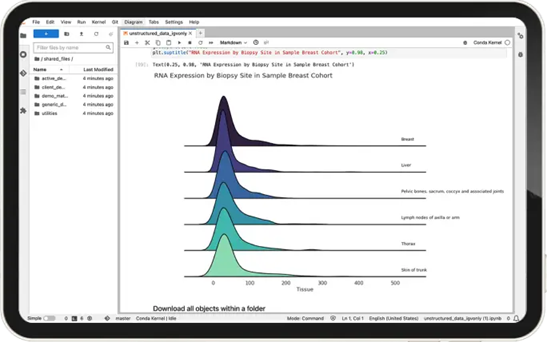 専用のクラウド環境でカスタム分析を実行したり、PythonやRノートブックでコーディングしたり、Survival Analysisのようなインタラクティブなアプリケーションを活用したり、Tempusのエキスパートと簡単にコラボレーションすることができます。